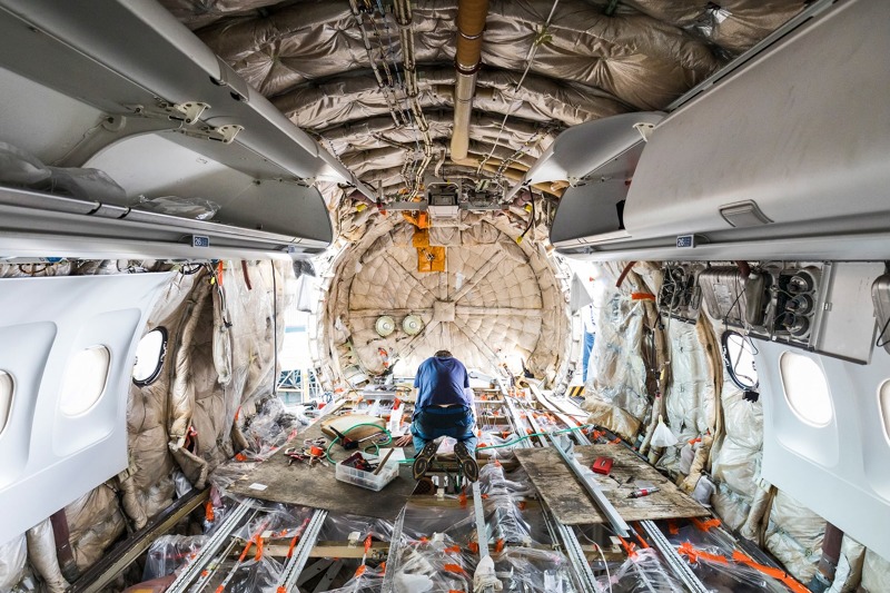 Modifikace kabiny a instalace Wi-Fi sítě pro flotilu úzkotrupých (narrow-body) letadel typu Airbus letecké společnosti Finnair v hangárech Czech Airlines Technics. Zdroj: CSAT