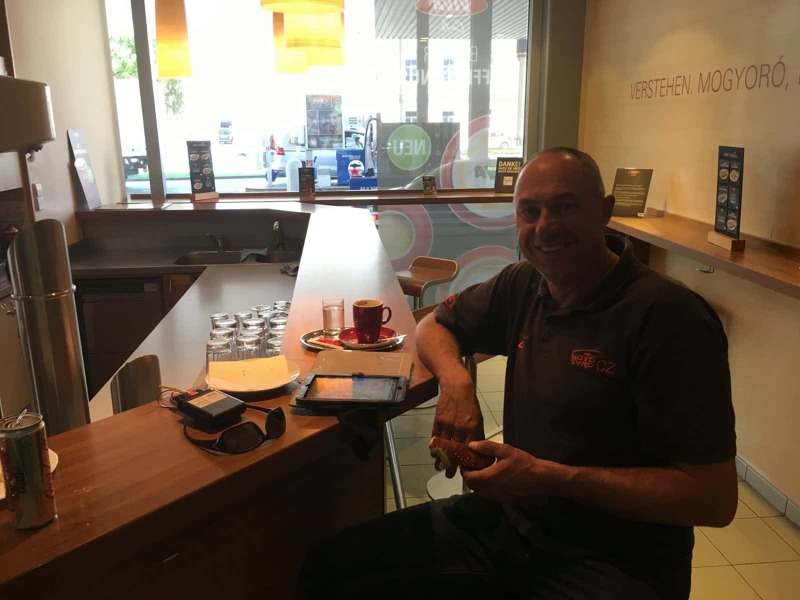Pavel Březina po natankování u čerpací stanice ve Stockerau. Foto: Jiří Pruša