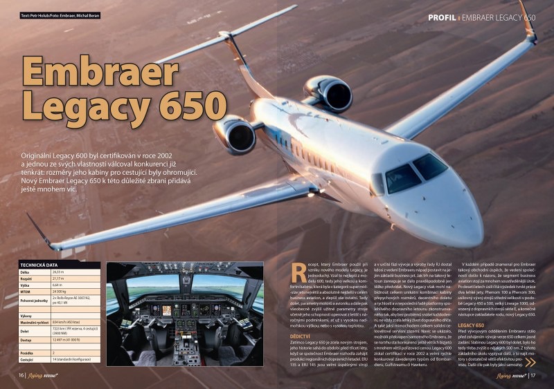 Recept, který Embraer použil při vzniku nového modelu Legacy, je jednoduchý. Vzal to nejlepší z modelu 600, tedy jeho velkou a komfortní kabinu, která byla v kategorii super mid-