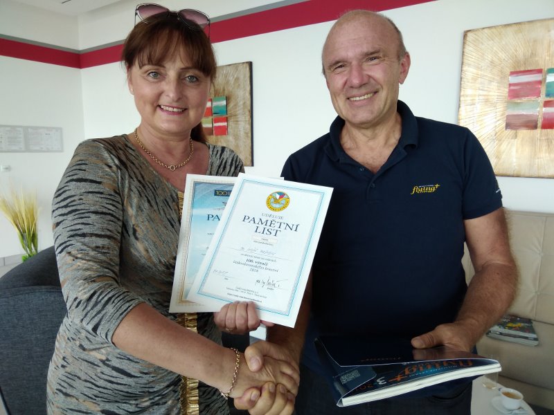 Dostalo se nám následně velmi milého přijetí v privátním salónku terminálu Jana Kašpara. Po kávě se stylovým pardubickým perníkem jako zákuskem jsme mohli předat naše obvyklé dárky - pamětní listy Flying Revue a Čs. svazu letců, samolepky s letištním značením, časopisy Flying Revue a náš nejnovější počin, kalendář leteckých fotografií Báječný svět létání 2019. Při skoro hodinu trvajícím rozhovoru jsme pak zjistili, že v něm chceme v nejbližších týdnech oboustranně pokračovat, protože jsme objevili řadu možností pro spolupráci.