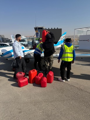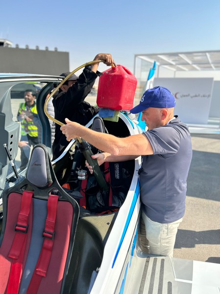 2. Sofistikované tankování Sharka před odletem na další plánovanou etapu do Káhiry :-)
