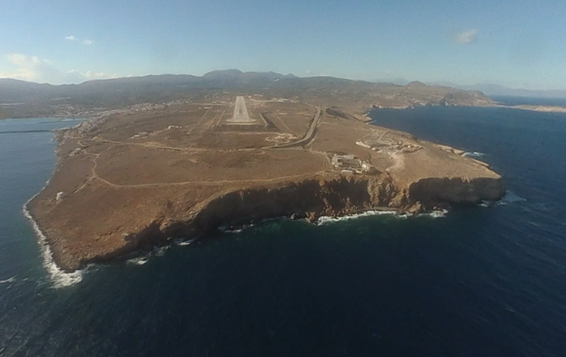 Letiště ostrova Ikaria je vtěsnané mezi kopce na jeho východním cípu