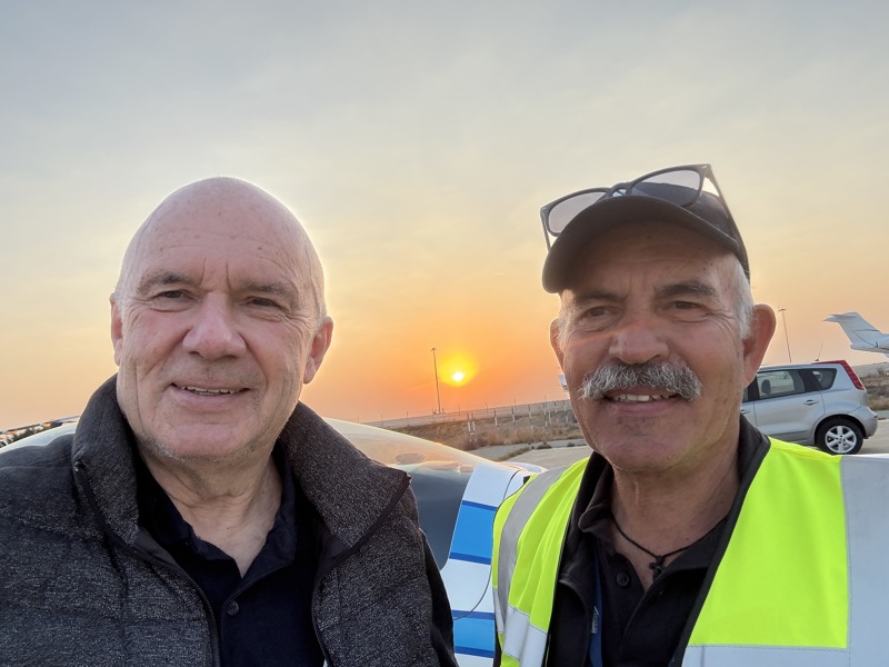 S pracovníkem handlingu Critonem na stojánce v Larnace. Criton neměl problém kvůli mně vstát v půl páté a přijít na můj odlet. To bylo skvělé.Zoom gallery