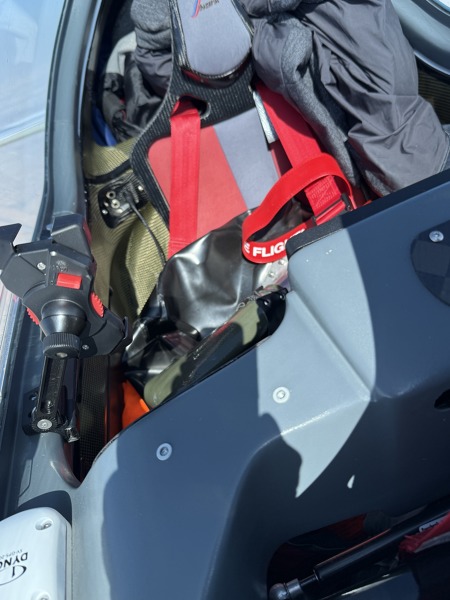 Palivový vak mám na zadním sedadle. Problém během letu je v tom, že nevidím a nevím, kolik přesně je z něho vyčerpáno, protože na něj nevidím. Zkoušel jsem ho tedy vyfotit, abych to mohl odhadnout lépe, ale z té fotky jsem toho stejně moc nepoznal. Zoom gallery