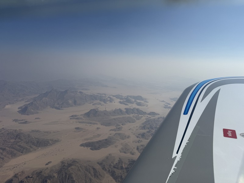 U letu nad pouští jsem se trochu obával vysokých teplot. Byl jsem ale mile překvapený, protože v letové výšce kolem 9000 stop byla teplota kolem deseti stupňů, což bylo velmi příjemné a dalo se tak dobře snést i pražení sluníčka přímo do hlavy. Na zemi byla teplota příjemných 25-27 stupňů.