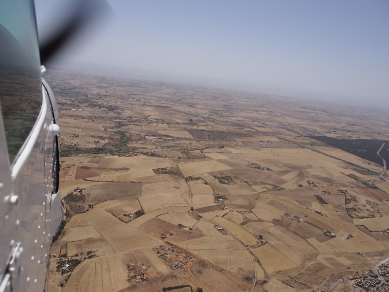Druhý den ráno máme v plánu připravovanou návštěvu českého velvyslanectví. Nejsnazší způsob dopravy tam, i kamkoliv po městě, jsou všudypřítomné „petit taxi“. Každé z těchto malých modrých aut zejména francouzských značek může vézt maximálně tři lidi, zato je doprava s nimi extrémně levná. Kilometr vyjde na cenu kolem 6 Kč, nástupní sazby se většinou nevedou. Co se týče cenové úrovně v ostatních oblastech lidského zájmu, tak velmi levně se zde dá koupit ještě např. jídlo a automobilový benzín. To bohužel neplatí o AVGASu, jehož ceny jsou velmi vysoké, srovnatelné např. s Holandskem nebo Itálií, k tomu ještě není vždy a na každém letišti dostupný. To se projevuje v dalším plánování naší trasy po Maroku. Letiště v Errachidii je, i přes svou velikost, bohužel jedním z těch, kde lze tankovat pouze Jet A1, a zároveň se nachází v příliš velké vzdálenosti od dalších možných vhodných letišť. Z nich nejbližší je Ouarzazate, tvořící pro nás několikahodinovou „zalíťku“. Volíme tedy zkrácení tratě a let přímo do Fesu. V Rabatu nás čeká poslední noc, po ní brzy ráno odjíždíme na letiště – nyní za cenu 150 dirhamů. Dostat se k letadlu není tak snadné, jak to známe z Evropy. Na nic zákeřného ale člověk nenarazí a po necelé hodině je u letadla. Před odletem máme ještě možnost navštívit zdejší aeroklub. Jeho malou smluvenou prohlídku využíváme k drobné údržbě a pořádnému umytí Julky. Lidé jsou zde prakticky bez výjimky velmi přátelští a ochotní pomoci.
