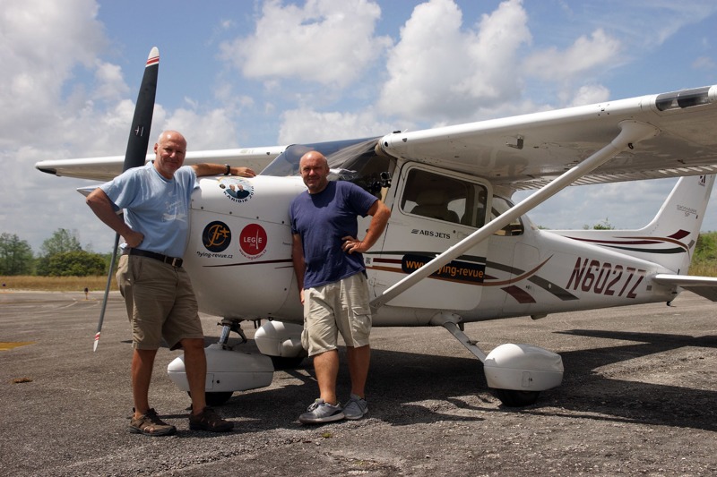 Letadlo si vypůjčili na letišti Page Field ve Fort Myers na Floridě, kam se s ním po dvou týdnech zase vrátili. Ve filmu se hned v úvodu dozvíte, jak se letadlo musí k dlouhé cestě připravit a pak už se vznesete do vzduchu. Sledovat pak můžete jak pohledy z letadla na ostrovy a všudypřítomné moře, tak pohledy do kabiny na oba účastníky expedice. Uslyšíte a uvidíte i jejich komunikaci za letu i komunikaci s řízením letového provozu.
