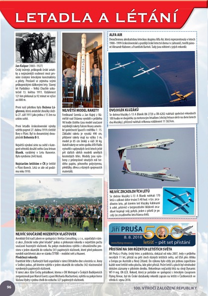 Stránka Letadla a létání v České knize rekordů 2018. Zdroj: Agentura Dobrý den