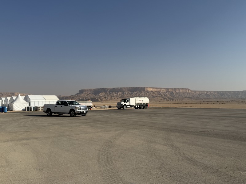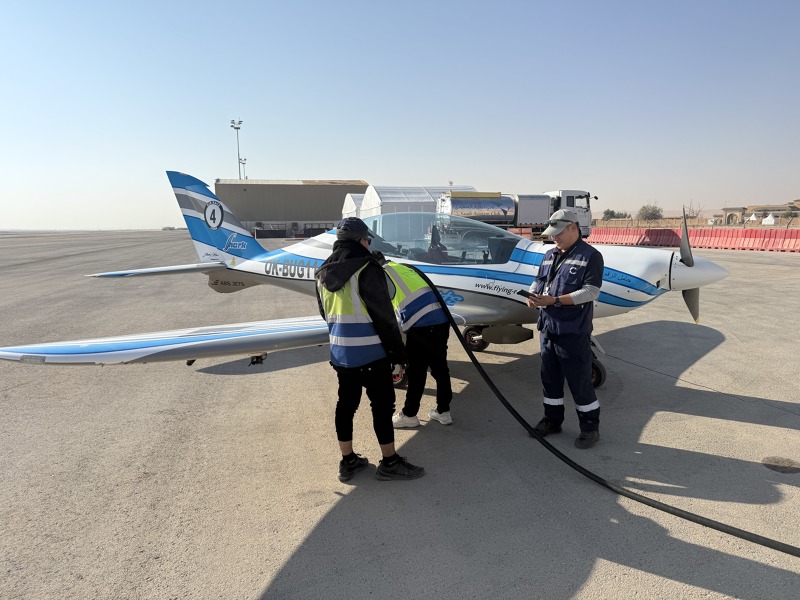 Na letišti v Rijádu mi přes několikatýdenní snahy nepovolili přivézt na letiště palivo, i když tam Avgas ani Mogas nemají. Denis Štefanko z dispečinku ABS Jets mi tedy možnost natankování domluvil na letišti Thumamah, které leží jen asi 30 km severně od letiště Rijád. Byl jsem trochu nejistý z toho, jak celá akce dopadne. Odlétnout si jen tak pár kilometrů z megaliště se dvěma paralelními dráhami i silným provozem, natankovat a zase se sem během hodinky vrátit se mi nezdálo realistické. Ve čtvrt na osm ráno jsem ale byl na letišti u mého handlingového agenta a v půl osmé jsem už byl u letadla a za deset minut osm jsem stál na vyčkávacím místě H1 vzletové dráhy 33R. As pět minut po osmé jsem už přistával na letišti Tumamah s krásnou asfaltovou dráhou, několika výcvikovými jety a velkými hangáry. Pár přátelských Filipínců zodpovědných za tankování letadel mě nasměrovalo k cisterně s palivem N95 a pár minut po půl deváté jsem měl natankováno 180 litrů. N95 stojí u pumpy asi 12 Kč za litr a na letišti byl asi za 25 Kč. Přestože tedy na něm letiště vydělává cca 100%, jeho cena je stále ještě nižší než u nás.