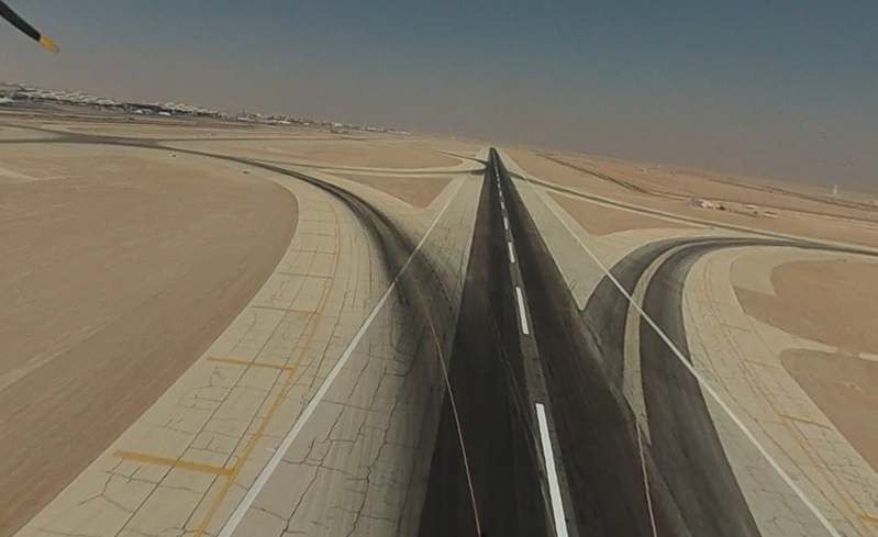 dráhy 33R letiště v Rijádu. Dojel jsem zpátky ke stojánce
