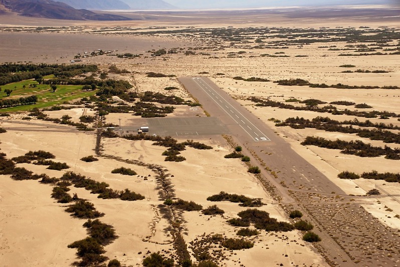 Z přeletu Edwards Air Force Base v plném provozu této vojenské základny. Její dráha sloužila také jako záložní pro raketoplány