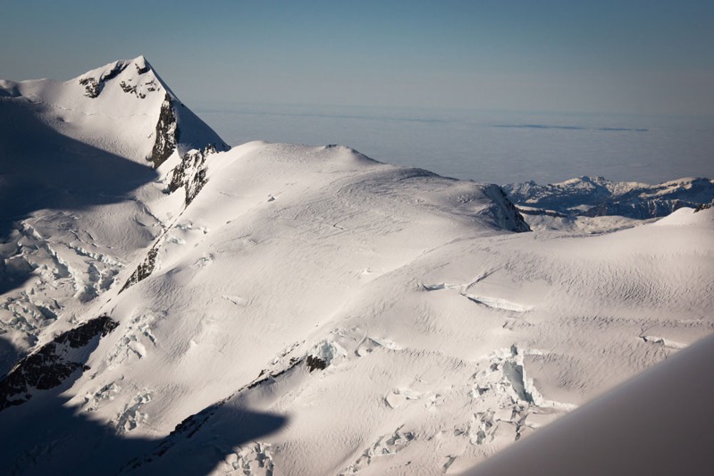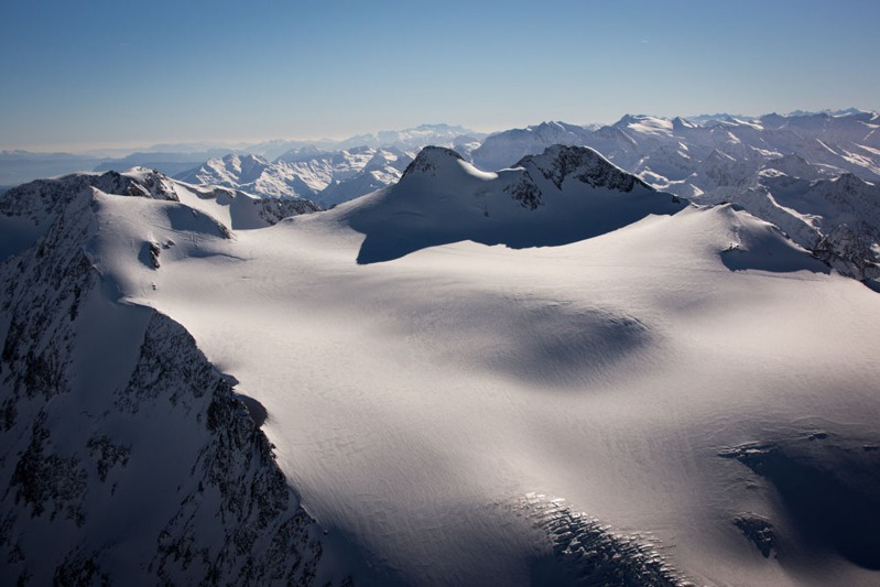 Lavinové pole oblasti zvané Concordia, kde se spojují zdroje sněhu, ledu a kamení, které pak tvoří ledovec Aletsch