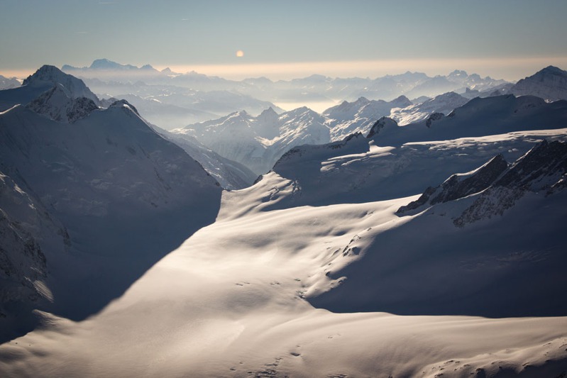 Západní část oblasti Concordia v okolí vrcholků Jungfrau, Monch, Eiger