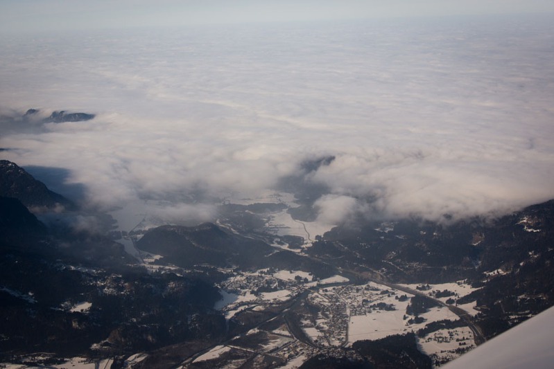 Hranice Rakouska a Německa u Fussenu. Německo je pod mraky.