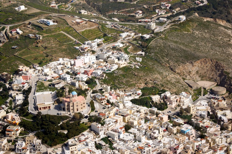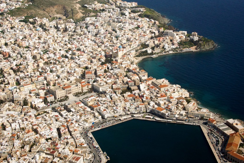 Vrcholek kopce s pravoslavným kostelem, Ermoupolis, ostrov Syros