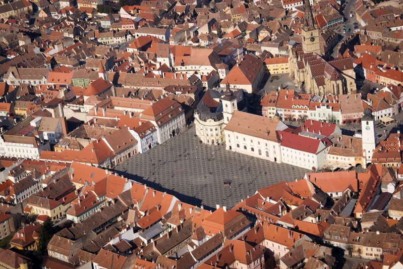 Hlavní náměstí města Sibiu, které bylo v roce 2007 společně s Luxemburgem vyhlášeno evropským hlavním městem kultury