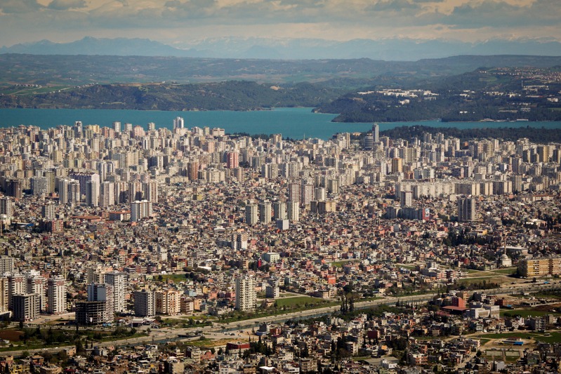 Město Adana po startu. Adana má 1,5 milionu obyvatel, 3. největší mešitu na světě, zajímavý historický střed města i příjemné prostředí kolem rozlehlých jezer.