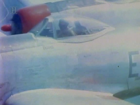 Takto lidé mohli spatřit pilota - v tmavé kukle a brýlích. Autor: Foto z dokumentárního filmu Thunderbolts - Conquest of the Reich (History Channel)