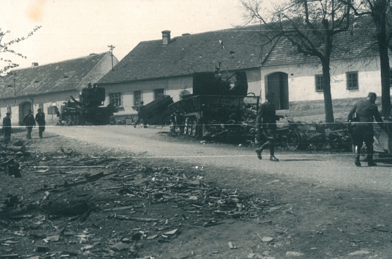 Následky opakovaných náletů stíhacích bombardérů v Miroticích 29. dubna 1945. Autor: archiv města Mirovice