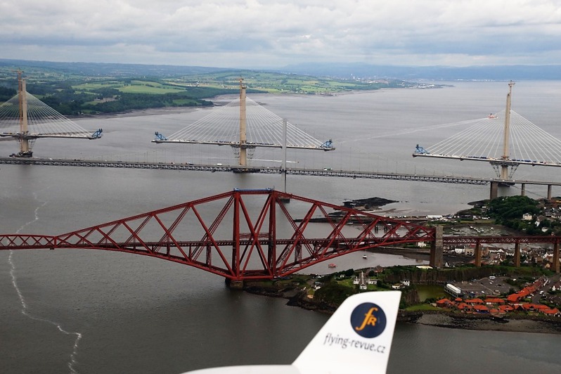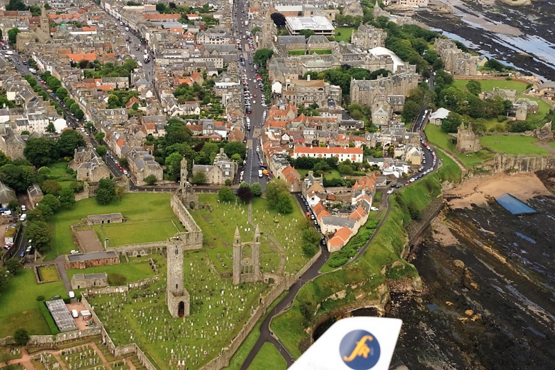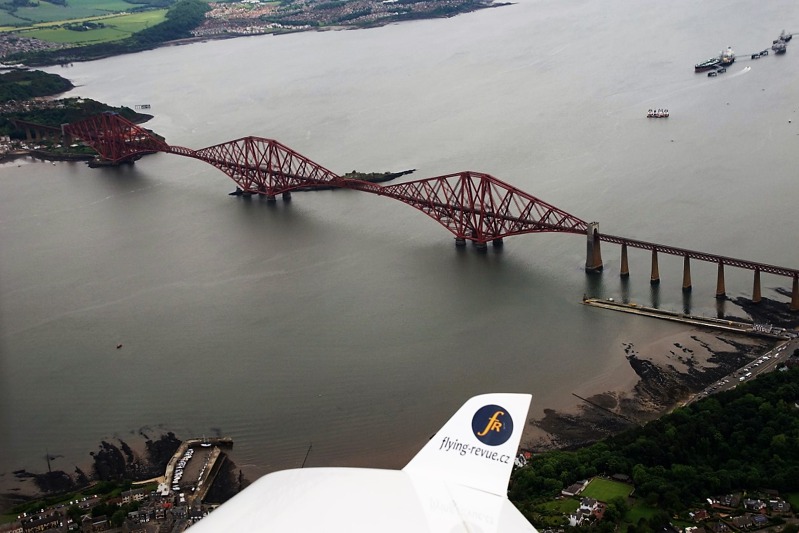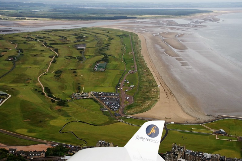 Z Fife jsem zamířil nejdříve nad St. Andrew - tady byl stvořen golf a taky se tu seznámil princ William se svou chotí Kate, když tu chodili na stejnou školu. St. Andrew je ale v TMA nedalekého vojenského letiště, tak jsem přelet musel nejdříve vykomunikovat. Podařilo se. Pak jsem už zamířil ke splnění dávného snu, přeletu mostů a historického centra Edinburghu. To leží v CTR místního dopravního letiště, takže tam nelze letět bez povolení řídícího. Věž mě nejdřív pustila na druhou stranu řeky, jen jsem musel kvůli ostatnímu provozu nějakou dobu kroužit severně od letiště. To mi nijak nevadilo, protože jsem měl alespoň čas vyfotit i nafilmovat místní mosty.