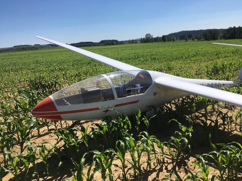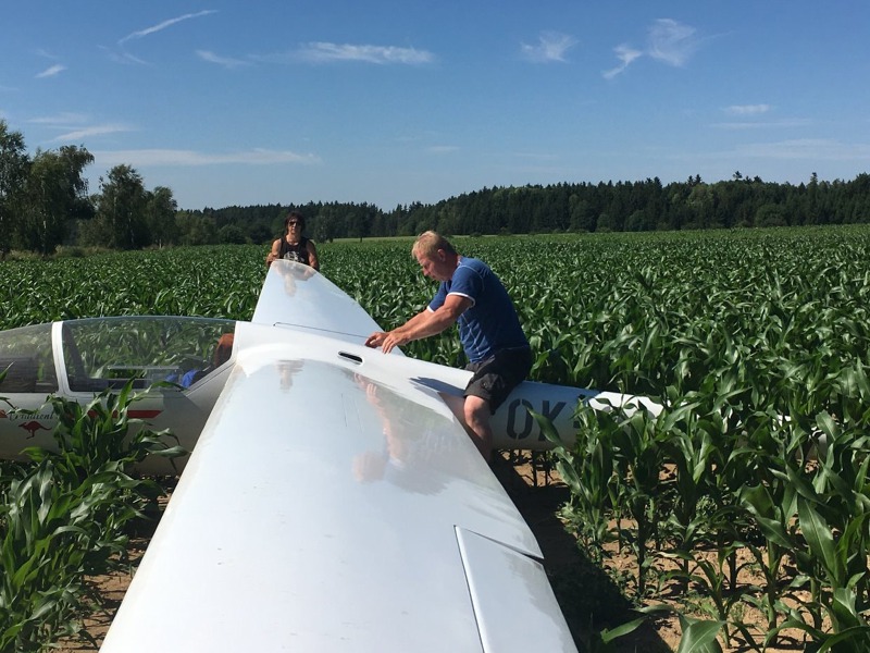 Není to sice nic příjemného, ale kdo se chce plachtařině věnovat systematicky, nejspíš se tomu nevyhne. Já přistával do terénu asi poosmé. Důležité je zachovat klid, mít vždy vyhlédnuté místo pro nouzové přistání, dávat pozor na elektrické vedení a stromy a poslední zatáčku točit v dostatečné výšce. Já si tak v praxi vyzkoušel šestý díl kampaně Doletíš?!, který jsme dělali pro ÚCL, s názvem Přistání kluzáku do terénu.