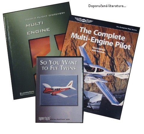 Nechtěl jsem teoretickou přípravu podcenit, a proto jsem si kromě materiálů letecké školy F AIR pořídil ještě knihu The Complete Multi-Engine Pilot od vydavatelství ASA (k dostání např. na www.aviatik.cz). Materiály letecké školy F-Air obsahují vše potřebné pro zvládnutí výcviku na kvalifikaci MEP. Jedná se především o „normální postupy“, které se věnují rozdílům létání s vícemotorovým letadlem oproti jednomotorovému. Tyto rozdíly nejsou až tak významné, ale přeci jen dva motory umístěné na křídlech místo jednoho v čumáku letadla přinášejí do ovládání letounu mírné změny a novinky. Dále materiál obsahuje „nouzové postupy“, řešící především asymetrický let při vysazení jednoho z motorů. Studium materiálů mi zabralo jedno delší odpoledne a večer. Vše, co jsem nastudoval, jsme znovu probrali s instruktorem letecké školy při pozemní přípravě, abych se v nabytých vědomostech utvrdil.