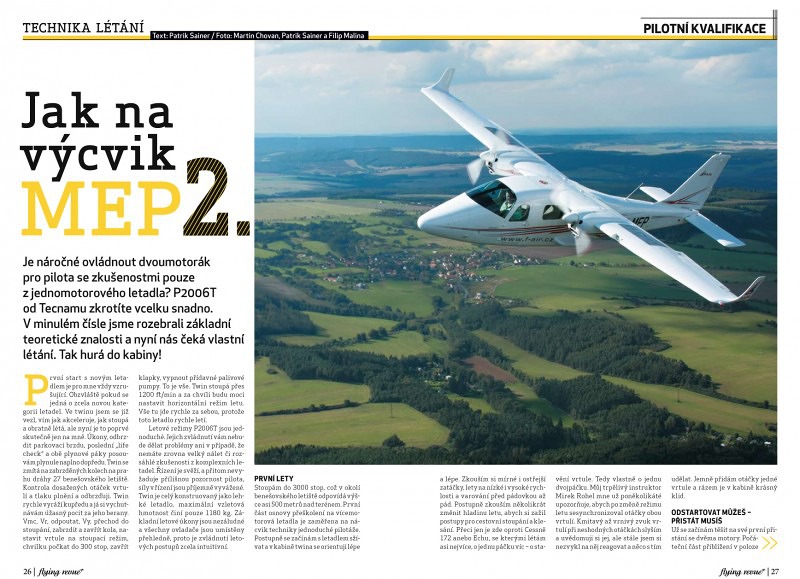 Je náročné ovládnout dvoumotorák pro pilota se zkušenostmi pouze z jednomotorového letadla? P2006T od Tecnamu zkrotíte vcelku snadno. V minulém čísle jsme rozebrali základní teoretické znalosti a nyní nás čeká vlastní létání. Tak hurá do kabiny!