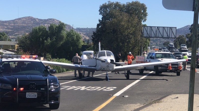 Piper 28 nouzově přistál na dálnici poblíž San Diega.