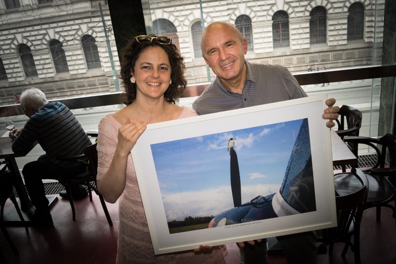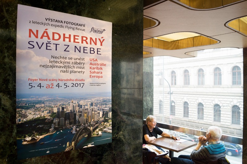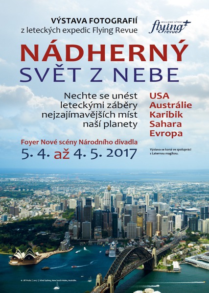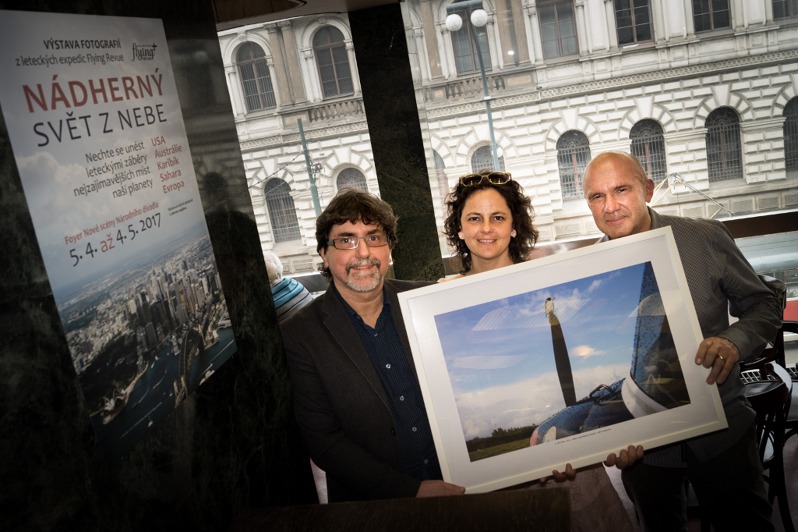 Nádherný svět z nebe Výstavu leteckých fotoobrazů Jiřího Pruši Nádherný svět z nebe v prostorách Nové scény Národního divadla zahájila spolu s autorem fotek herečka a sopranistka Eva Vrbková z Laterny Magiky.