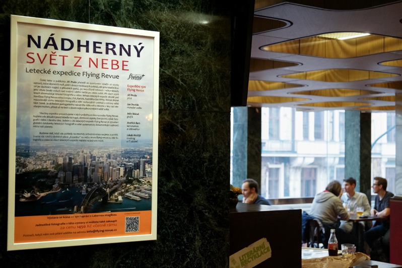 Malý princ je - sice až v druhém plánu - příběhem letce, autor Antoine de Saint Exupéry je rovněž letec. Odtud byl jen krůček ke spolupráci Flying Revue s Laternou magikou, která představení Malý princ už přes rok uvádí na Nové scéně pražského Národního divadla. Jedním z výsledků spolupráce je právě otevřená výstava leteckých fotoobrazů Jiřího Pruši z expedic Flying Revue v Café Nona v budově Nové scény.