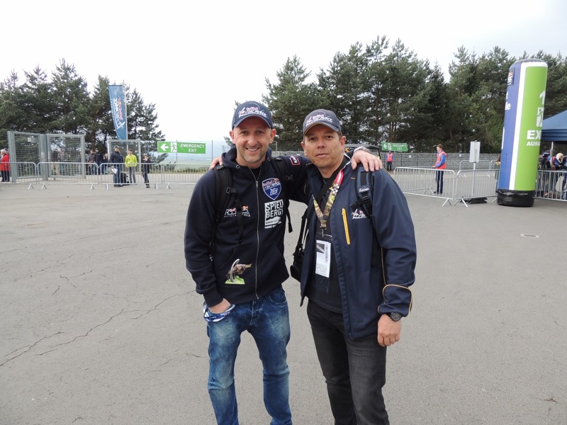 Při vstupu na závodiště byli nejvíc vidět fanoušci dnes již nežijícího Hannese Archa. Točily se kolem nich televizní štáby i fotografové. Naši kluci byli v hangárech, ale když jsem naší skupině dal pokyn k hlasitému provolávání: "Martin! Petr!", volání uslyšeli a šli přímo k nám.