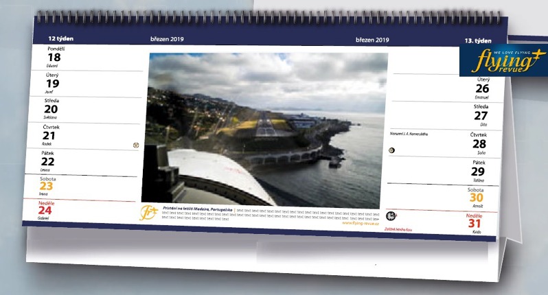Kalendář kromě obrázků nabízí i do jednotlivých dní implementované letecké kalendárium.