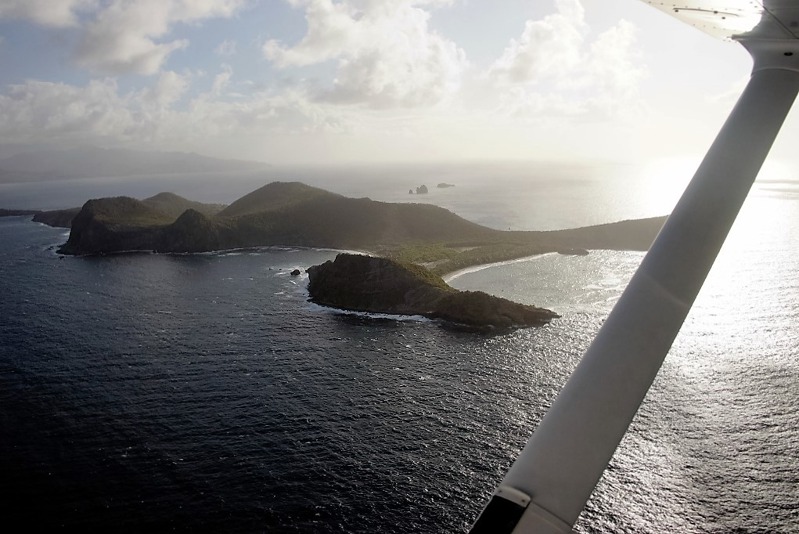 Nad ostrovem letíme ve výšce 1500 stop, tedy zhruba 450 metrů – z téhle výšky můžeme ostrov a pobřeží dobře nafilmovat a nafotit. Ostatně takhle létáme během expedice setrvale – nad ostrovy 1500 stop, nad otevřeným mořem vystoupáme výš, abychom při případném technickém problému měli více času na jeho řešení nebo na přípravu přistání do vody. Pro ty, kdo se více zajímají o pilotní stránku věci, najdou více informací tohoto druhu ve čtvrtém letošním čísle časopisu Flying Revue, které vyjde na přelomu jara a léta.