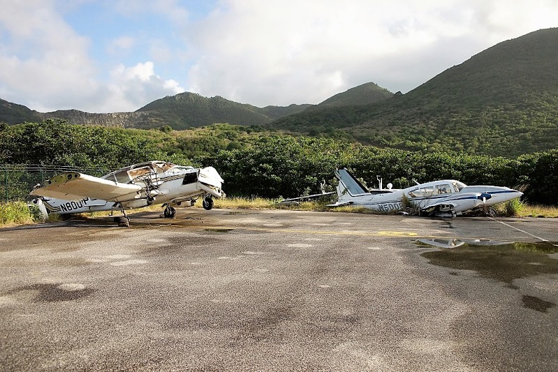 To ale až zítra. Dnes přistáváme na druhé, francouzské straně ostrova, na letišti Grand Case. Tady je přistání bez komplikací, jen uvítání v podobě hurikánem ošklivě pocuchaného letadla krčícího se v křoví na kraji letiště není zrovna nejpříjemnější. Po ubytování vyrážíme na objížďku ostrova, ujít si nedáme ani zařazení mezi turisty vyhlížející přistávající letadla na letišti Juliana.