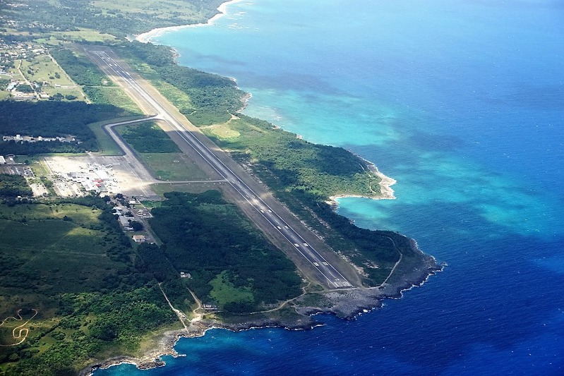 Dráha 10 letiště Maurice Bishopa na ostrově Grenada.
