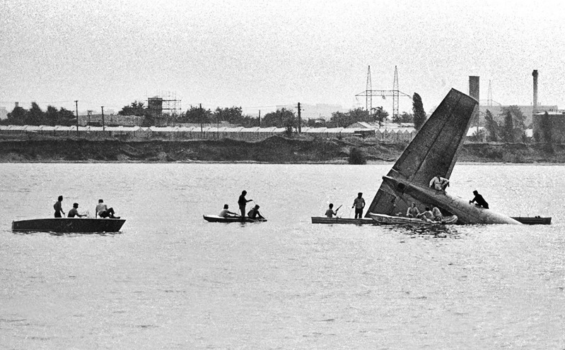 Scenárista by to nevymyslel lepšie. Presne v strede letnej sezóny, pred svedkami stoviek párov očí sa dňa 28. júla 1976 objavilo nad jazerom lietadlo Československých aerolínií, typ Iljušin IL-18, imatrikulačnej značky OK-NAB, ktorý smeroval z Prahy do Bratislavy. Jeden z desiatok tisíc podobných letov na rovnakej trase. Nič výnimočné.