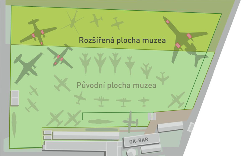Rozšíření plochy pro venkovní expozice Leteckého muzea v Kunovicích. Tu-154M bude umístěno právě v nové části. Zdroj: LMvK