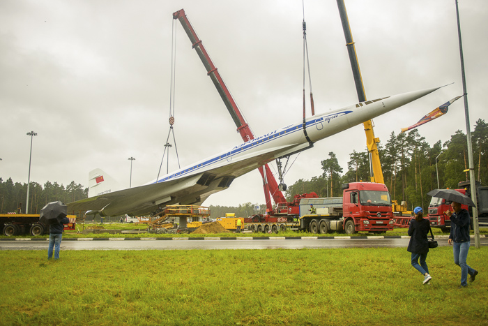 O přepravu se technici pokusili již v roce 2015, po pěti metrech se ale podvozek zabořil do terénu a bez hydraulických zvedáků nebylo možné s letounem manipulovat. Na křižovatku u letiště Žukovskij byl tedy letoun převezen až v červenci 2019. Na místě pak byla provedena kompletace křídel a ošetření spojů speciálním tmelem proti vlhkosti. Pro umístění letadla byly vyrobeny speciální podstavce, podobné těm, na nichž stojí rodný bratr tohoto stroje, Tu-144 CCCP-77112 na střeše leteckého muzea v německém Sinsheimu. Tam mají letečtí fanoušci ojedinělou příležitost porovnat oba konkurenční letouny, tedy Tu-144 a Concorde, vedle sebe.