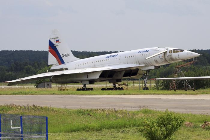 Tu-144, jenž zdobí příjezd k letišti Žukovskij, má číslo CCCP-77114 a pro přesun od Výzkumného ústavu M. M. Gromova, kde trávil svou penzi, ho museli podobně jako kunovičtí jejich Tu-154M "odstrojit". V tomto případě se jednalo především o demontáž křídel.