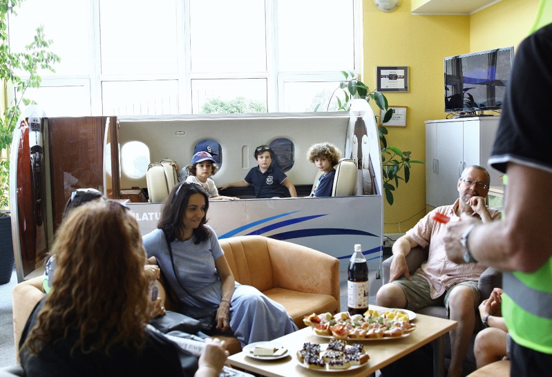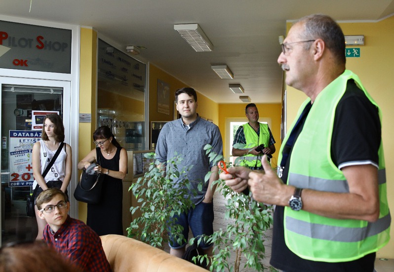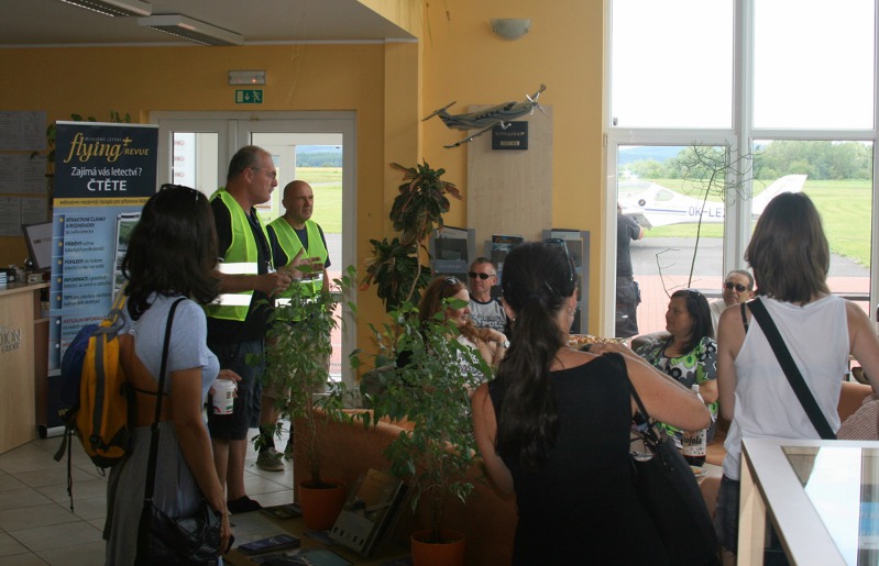 Čekání na let si hosté krátili pobytem v lobby letiště. O letadlech a létání jim vyprávěl výkonný ředitel Flying Revue Miloš Dermišek