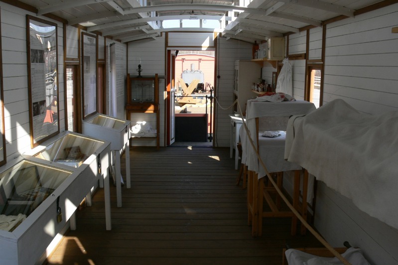 Vlaky byly vybaveny. Vezly například sanitní vůz i s operačním sálem, zde pojízdná železniční dílna