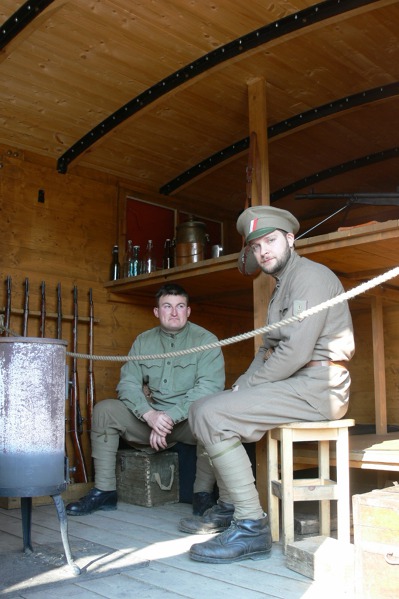 Nemocniční vagón. V něm se fotili bratři Jiří a Ladislav Lábusovi coby lékaři do Legiokalendáře.