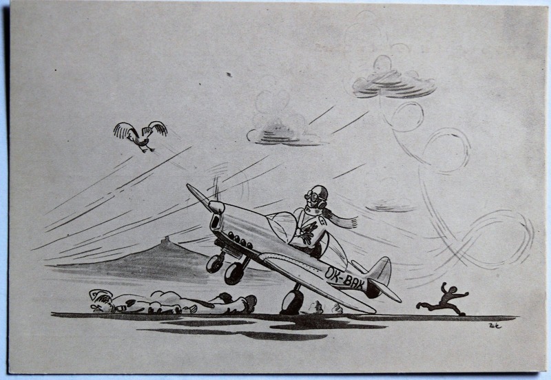 Tak on to vypnul, lidi lezli k nám, to bylo něco… Pak jsem zase ty lidi hnal pryč, nasadil kliku, a jak to chytlo, hodil jsem kliku dovnitř, skočil za ní a už jsme letěli. To éro na padesáti metrech odstartovalo. Němci byli v tomhle úžasně daleko. Když byl protivítr, tak to éro za letu skoro stálo! A druhý den šel kapitán k raportu: "Kde jste byli?!" "Instruktážní let!" "Nepovídej! Vy jste přistáli!" "To není pravda!" "My vás známe!" Sundali nám pár šprdlíků z platu, ale za ten zážitek to stálo.