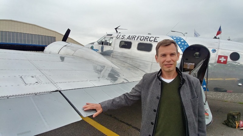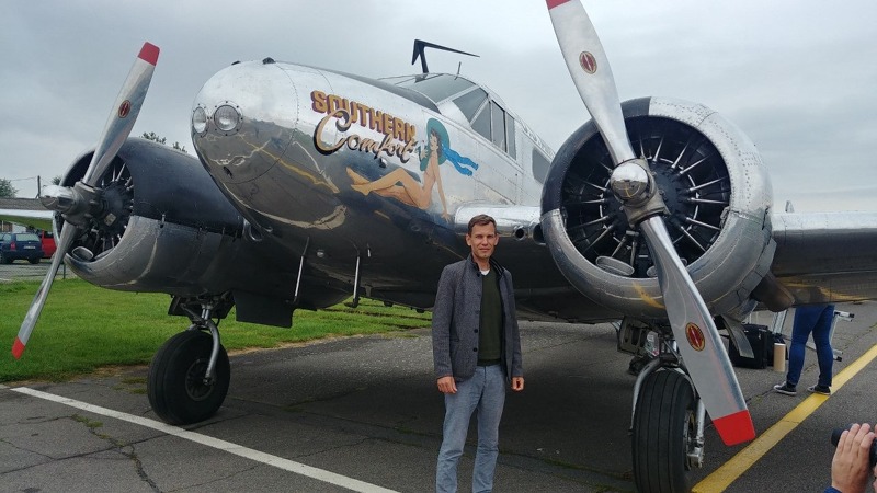 Soutěže Flying Revue - reportáž Ako výherca súťaže, ktorú zorganizovali tímy Pure Aviation a Flying Revue, som mal možnosť stráviť celý deň s posádkou lietadla Beechcraft C-45 Expeditor a to osobne so sympatickými manželmi Bezděkovými Petrem a Monikou.