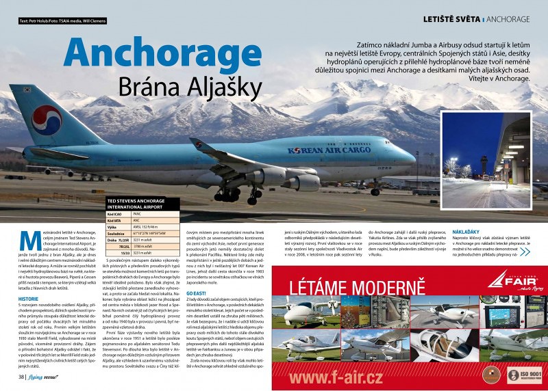 Mezinárodní letiště v Anchorage, celým jménem Ted Stevens Anchorage International Airport, je zajímavé z mnoha důvodů. Nejenže tvoří jednu z bran Aljašky, ale je dnes i velmi důležitým centrem mezinárodní nákladní letecké dopravy. A může se rovněž pochlubit i největší hydroplánovou bází na světě, na které si hustota provozu Beaverů, Piperů a Cessen příliš nezadá s tempem, se kterým vzlétají velká letadla z hlavních drah letiště.