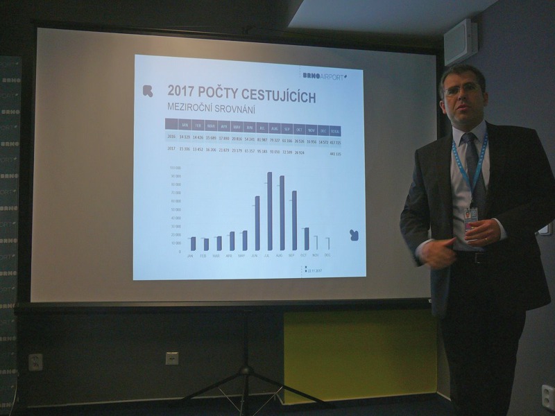 "V roce 2016 klesl počet cestujících na Letišti Brno na 418 000, což je nejméně za sedm let. Letošní počty cestujících se však blíží úrovni let 2013 a 2015. V nejvytíženějších měsících, což jsou červenec a srpen, letiště odbavilo vždy přes 90 tisíc cestujících. Stále jsou tři nejžádanější destinace Burgas, Heraklion a Antalya, avšak znovu se zvyšuje zájem o Egypt," řekl Radek Lang.