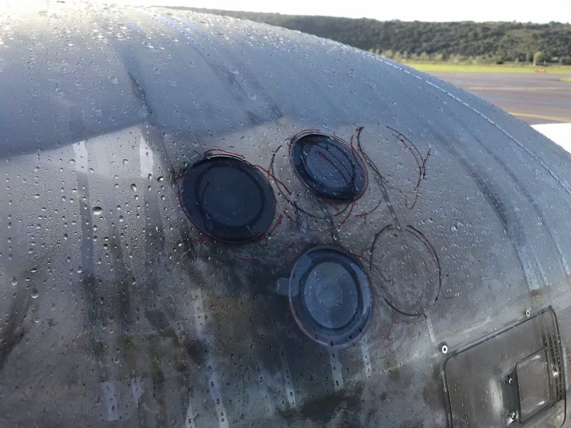 Vyznačení míst pro přísavky držáku kamery Osmo na překrytu kabiny OK-LEX.