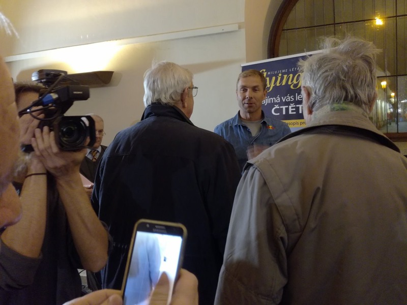 Z besedy jsme pořídili videozáznam, takže pokud jste na besedu nemohli dorazit, sledujte web a facebook Flying Revue, kde záznam po skončení výstavy Báječný svět létání, v jejímž rámci se beseda konala, zveřejníme. Zatím si můžete prohlédnout fotografie a výše také krátké mobil-phone-video z průběhu besedy. Několik fotografií pro článek věnovala i fotografka Andrea Barcalová. Děkujeme!