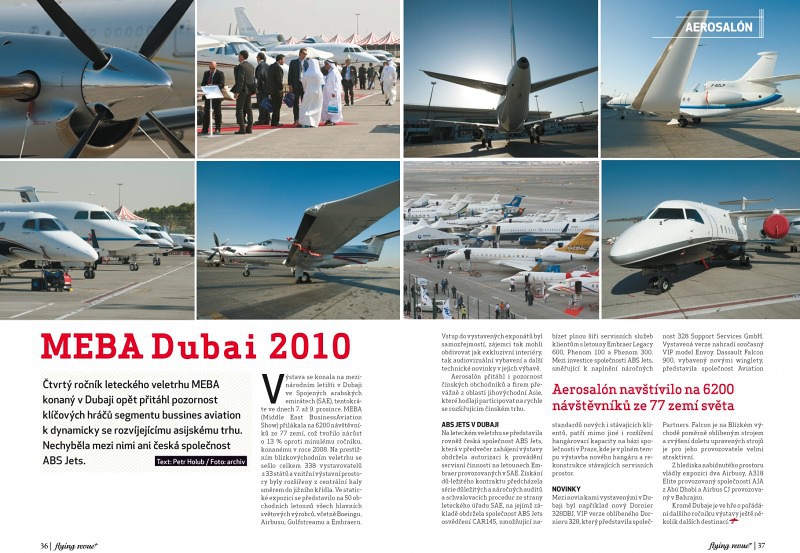 Čtvrtý ročník leteckého veletrhu MEBA konaný v Dubaji opět přitáhl pozornost klíčových hráčů segmentu bussines aviation k dynamicky se rozvíjejícímu asijskému trhu. Nechyběla mezi nimi ani česká společnost ABS Jets.