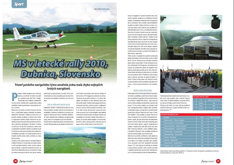 Triumf polského navigačního týmu umožnila jedna malá chyba nejlepších českých navigátorů. Polská a česká navigace jsou světovou špičkou, na většině vrcholných soutěží se o medaile často dělí Češi s Poláky. Tentokráte však vyhlášení výsledků Mistrovství světa v letecké rally vypadalo jako polská přehlídka, česká reprezentace vybojovala jen stříbro v týmech.